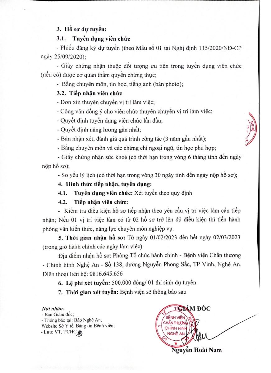 Thông báo kết quả xét tuyển viên chức làm việc tại Bệnh viện Chấn thương Chỉnh hình Nghệ An năm 2023