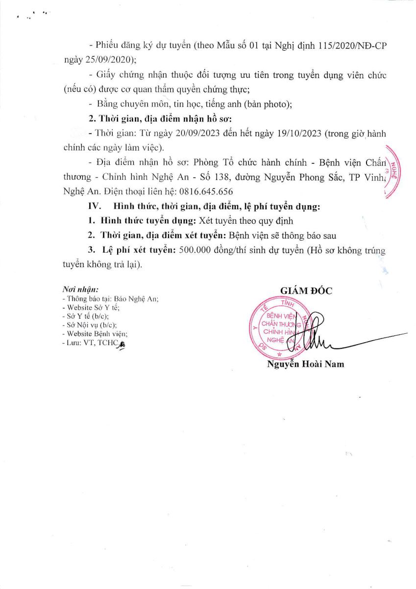 Thông báo kết quả xét tuyển viên chức làm việc tại Bệnh viện Chấn thương - Chỉnh hình Nghệ An